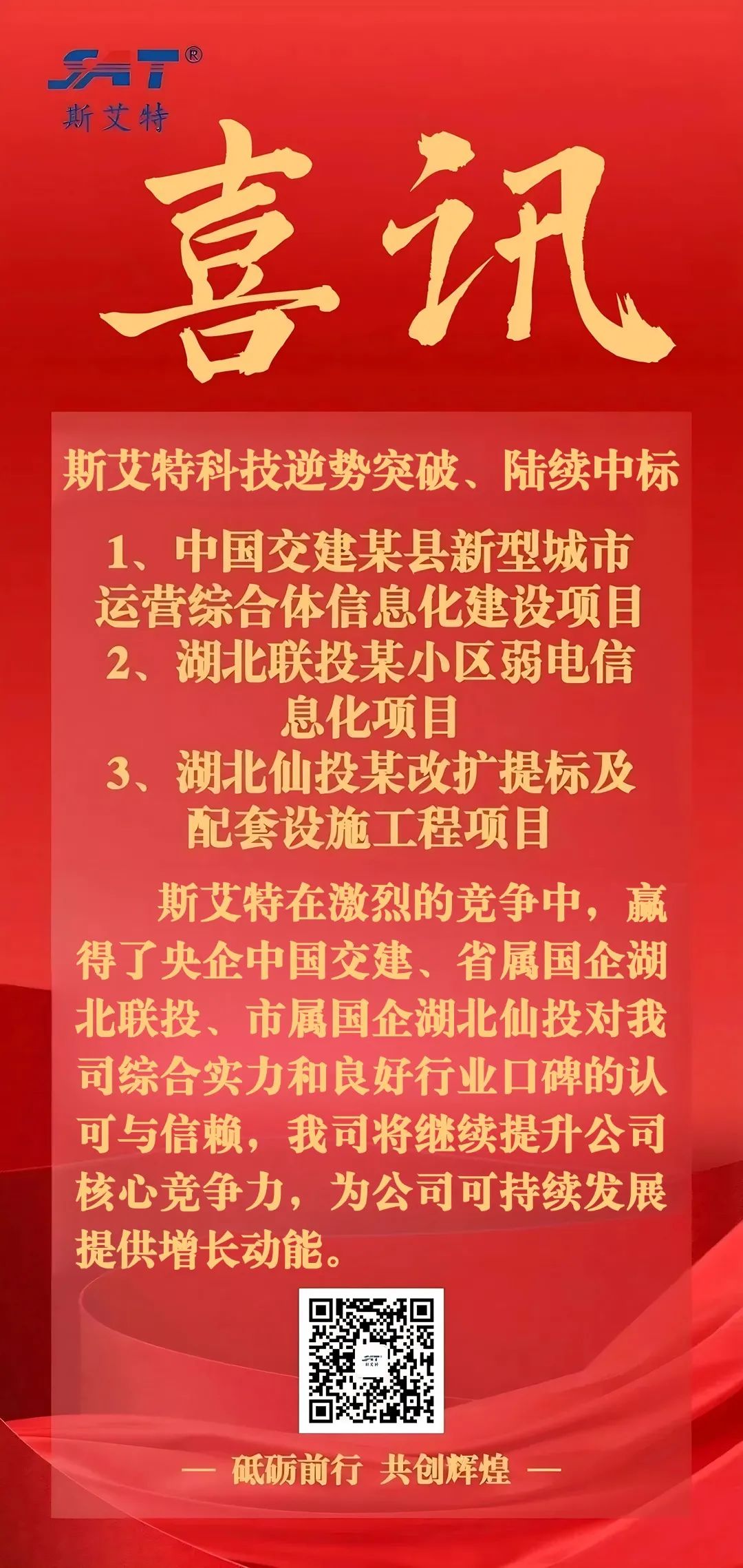 斯艾特科技成功中標央企中國交建、省屬國企湖北聯(lián)投、市屬國企湖北仙投三大項目